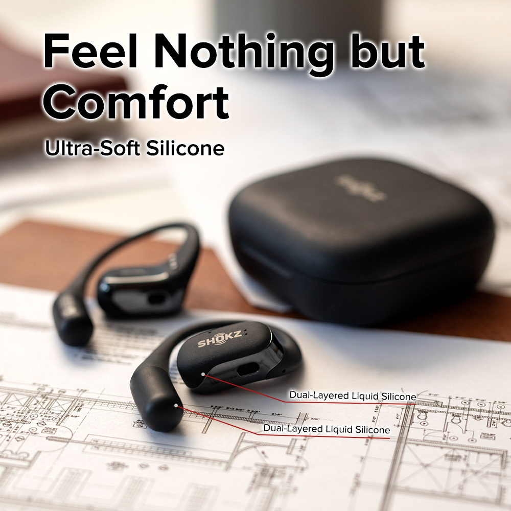 (SG) SHOKZ OpenFit Open-Ear Earbuds with Earhooks and Microphone, True Wireless Bluetooth Earphones, IP54, 28h Playtime