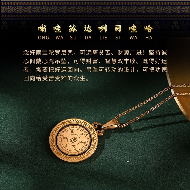 【?送手抄佛经?】升级版-发财神坠 招财纳福雨宝陀罗尼吊坠 招财纳福 补财库 脱离贫穷 消解业障 开光正品 天珠项链挂件 可转动 Authentic Blessed Necklace Gold Plated Fortune Pendant Charm Fengshui