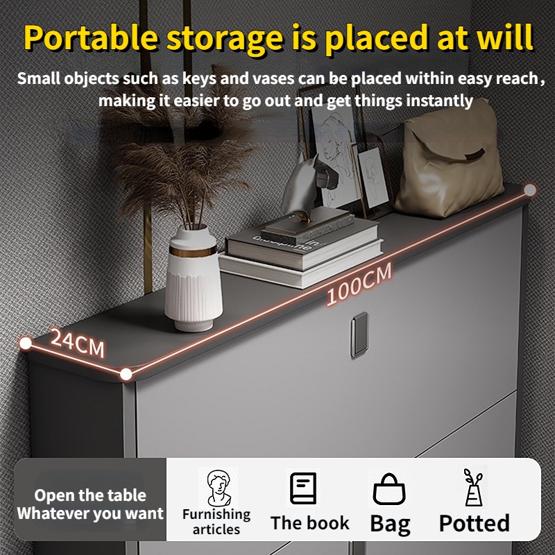 【SG Local Seller】Double Layer Shoe Cabinet 17/24cm Outdoor Shoe Rack 110cm Large Capacity Multifunctional Space Saving Ultra Thin Shoe Cabinet