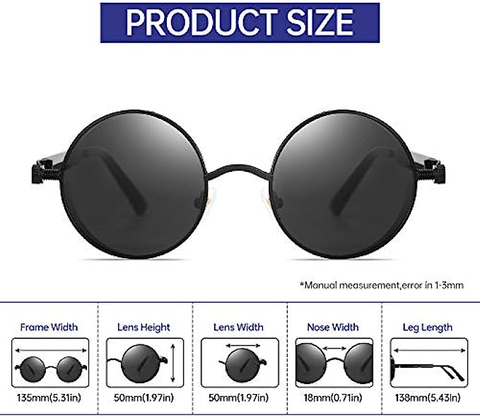 男士蒸汽朋克偏光太阳镜,专业紫外线防护,圆形哥特式色调女式,金属圆框