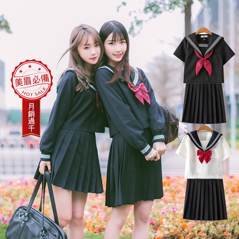 ?現貨?JK制服✨水手服 學生制服 國中校服套裝 領結 百褶裙 短裙 蝴蝶結 高校服 襯衫 黑三本白二本