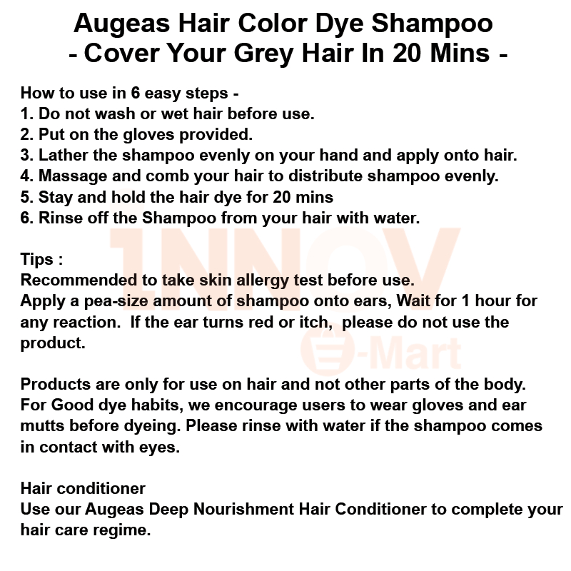 [?? Local Stocks ] Augeas 3 In 1 Hair Dye Shampoo | 20 Mins Quick Fix For A Long Lasting Hair Dye