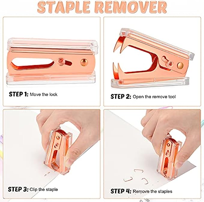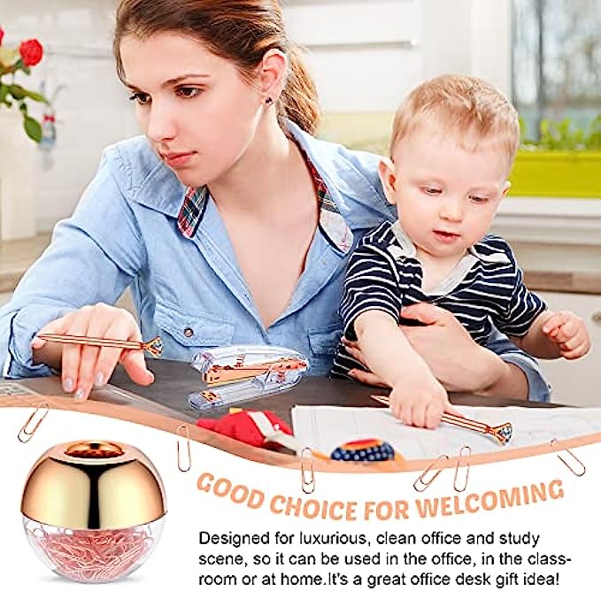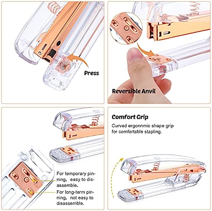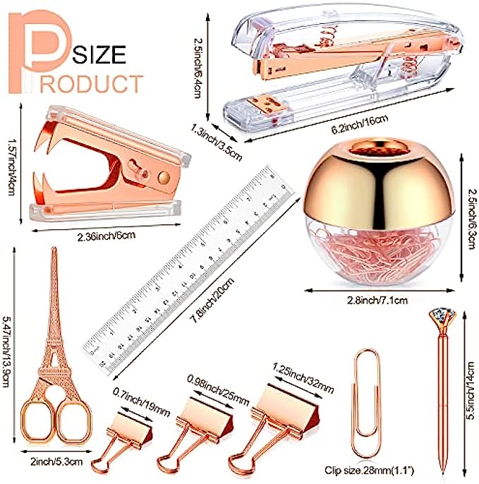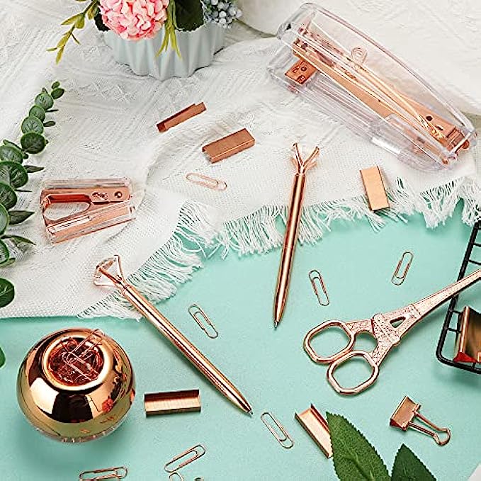 Quantity material: the body of the clear rose gold stapler is made of ABS and stainless steel, which are sturdy and not easy to deform; The binder clips and diamond ballpoint pens are anti-rust and anti-impact, so they can serve you for a long time
