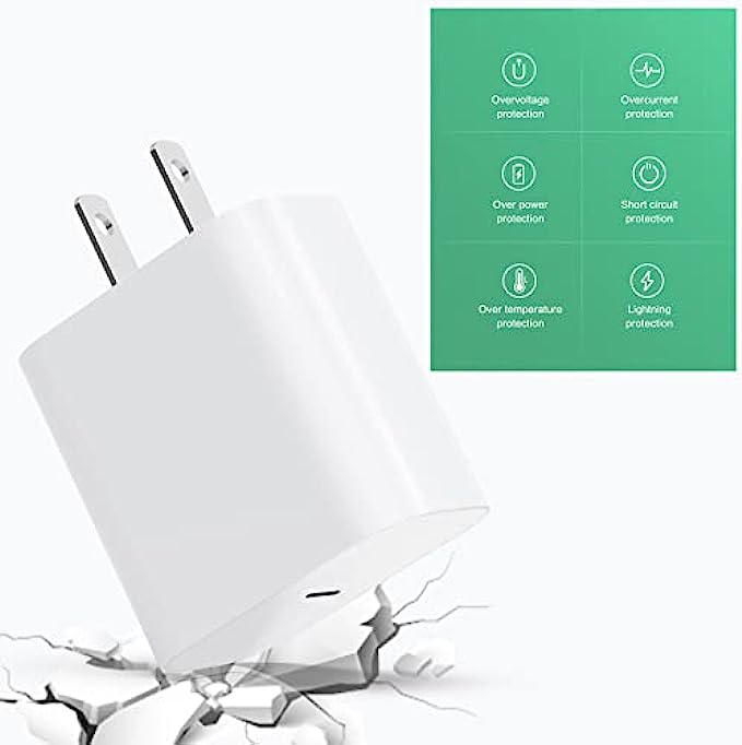 ★【3X iPhone Charger Fast Charging】 The 20W USB-C port PD fast adapter USB C wall charger and 6ft usb c to lightning cable, which can reach up to 3X faster than the Apple original 5W charger. It will charge your iPhone devices up to 57% power in just 30 minutes! Fully charge will take 1.8 hours only! ◆【Safety Protection】 With The Intelligent Chip Inside, 20W USB C Charger Offers Multiple Safeguards Automatically. ETL, FCC, CE, ROHS Certificated. Multi-Charging Protection will perfectly protect both your iphone/ipad devices also the brick/ cord against overheating, excessive current, short-circuit and overcharging. Apple MFi iPhone charging cable promises no warning message pops up. Exhaustive Protection While Charging. ★【PD 3.0 High-Speed iPhone Charger】Fast charge for most USB-C iphone 13 or tablet including iPhone 13/13 Mini/13 Pro/12/12Pro/12 Pro Max/12 Mini/11/11 Pro/11 Pro Max/XS Max/XS/X/XR/8 Plus/8, iPad Pro/ iPad Air/ iPad, AirPods Pro. Standrad Charging Speed works with iPhone 7/7 Plus/6s/6s Plus/6/6 Plus/SE/5s/5/5c. ◆【Perfect combination with 4 Pack】2 Pack 20W USB-C iPhone charger and 2 Pack 6FT USB-C to Lightning cable which can satisfy the needs of multiple iphone devices in different places like iphone/ipad/ AirPods,and also for family or friends to use with. Portable and compact design makes it easier to put into your pocket/bag/backpack for traveling or in the car use. ☎【Our Convnient Support】We provide 1-Year worry-free replacement guarantee. If you have any concerns, please do not hesitate to contact us! We promise to solve your problems within 24 Hrs!