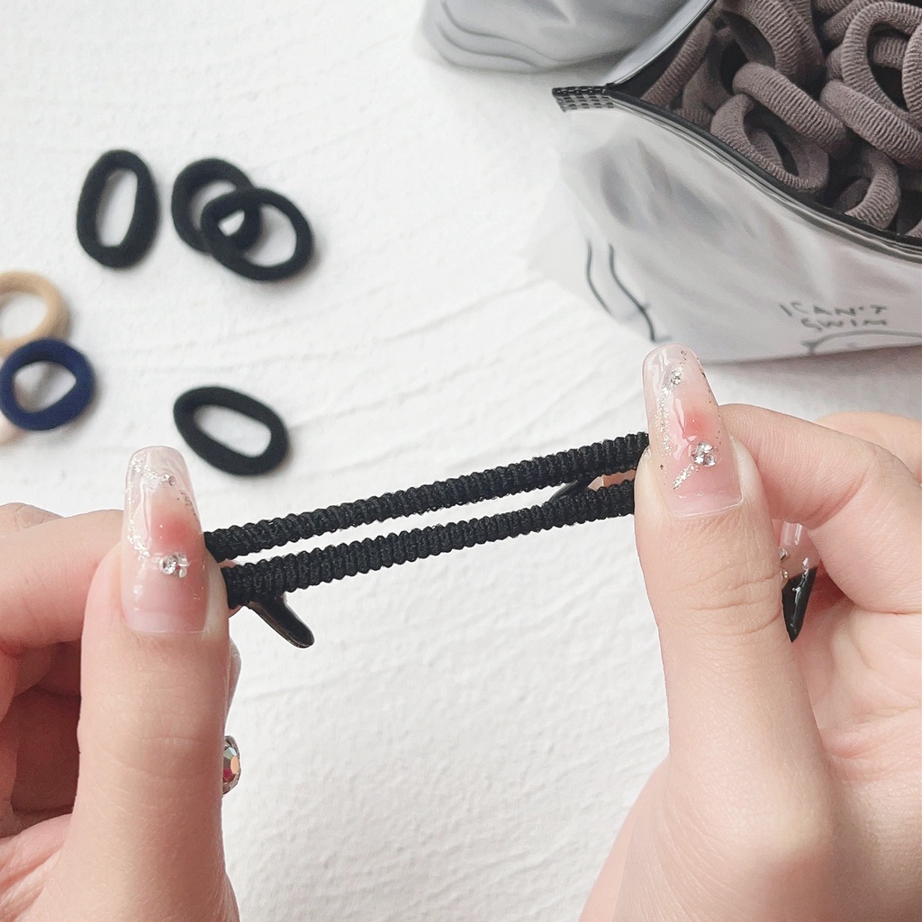 Material: elastic chun Color: black A small bag of 50 pieces can be tied to rest, adults or children can use it softly without breaking hair like an elastic band