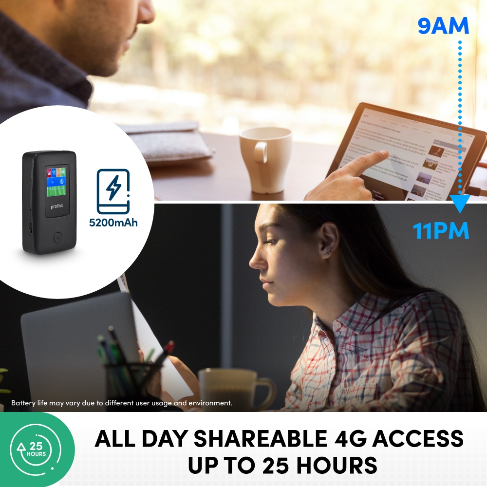 [25 hour Portable Mi-Fi | Power bank] Prolink DL-7203E 4G LTE Mobile WiFi with LCD display with RJ45 LAN port/ Powerbank