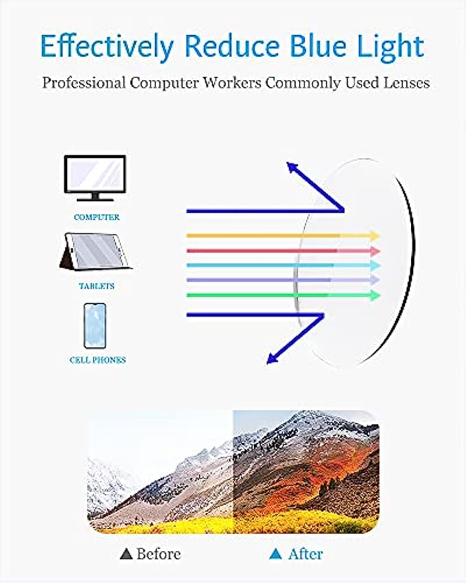 • ANTI BLUE LIGHT - Cut 90% of the blue light. Relieving eye fatigue, dry and vision falling.