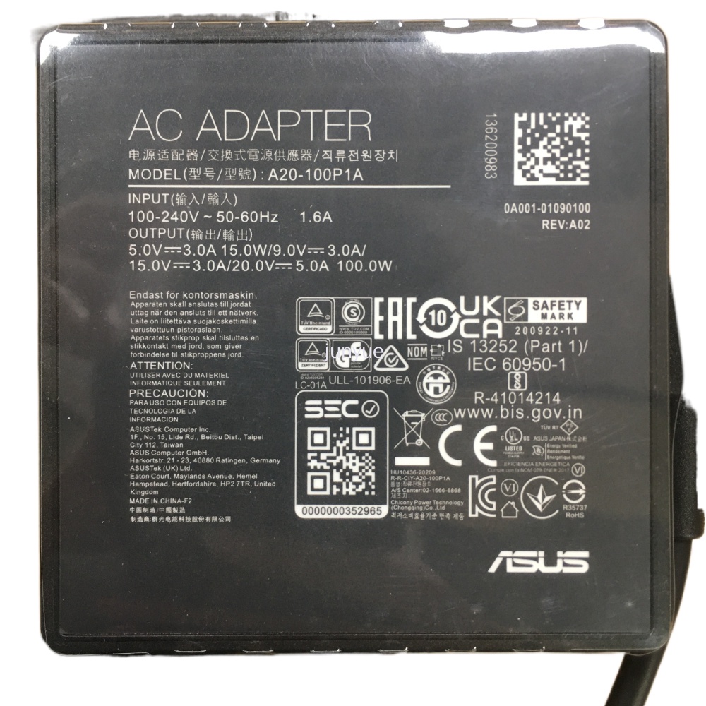 ASUS ROG 20V 5A 100W USB Type-C AC Charger Adapter For Asus ZenBook 14X UX5401EA UX5400 UX5401 Power