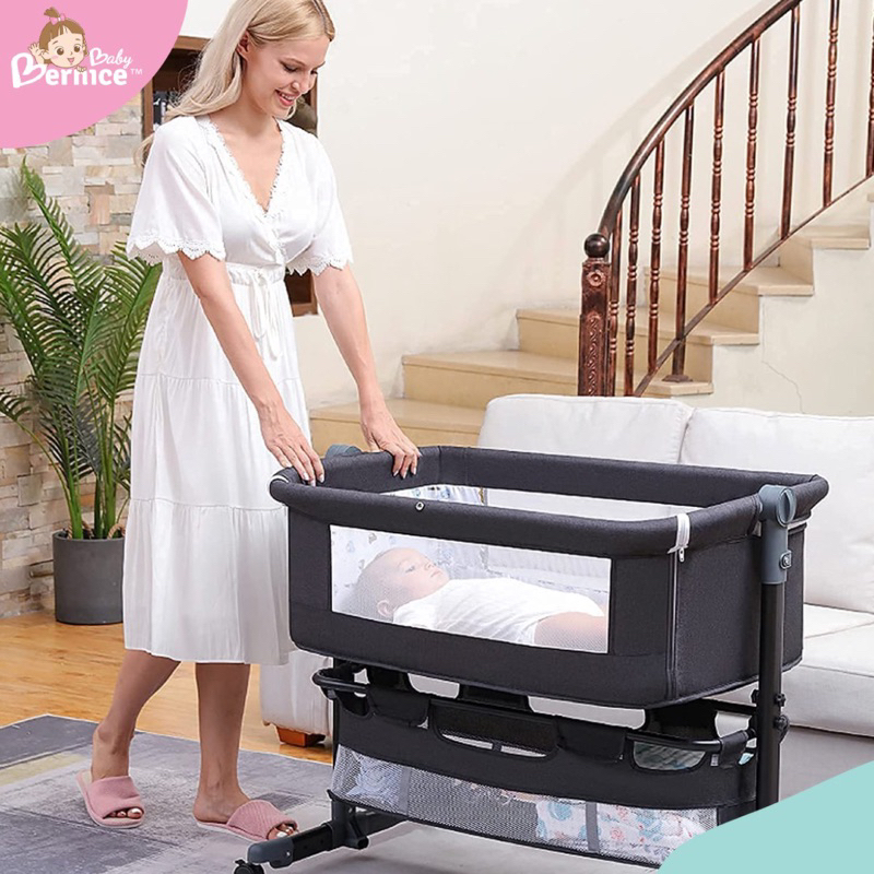 Adjustable Rocking Cot/Side Bed with wheels L 90cm W 58-68cm H 80cm Inner cot size L 87cm W 50 cm Depth 32cm