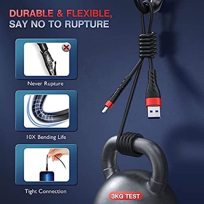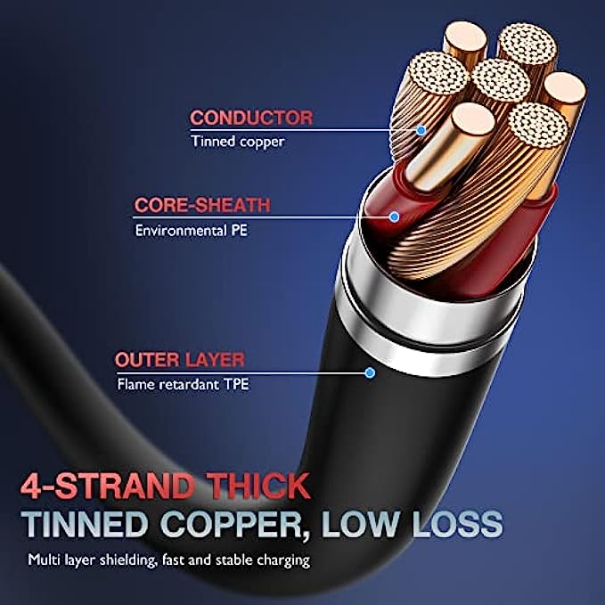 [ TPE Coated Outer layer Craft ] - TPE material is environment-friendly, safe, non-toxic and soft to touch. It also has good weather-resistance and temperature resistance. It's more flexible than nylon braided cable. And it has high resilience, so it won't knot easily.