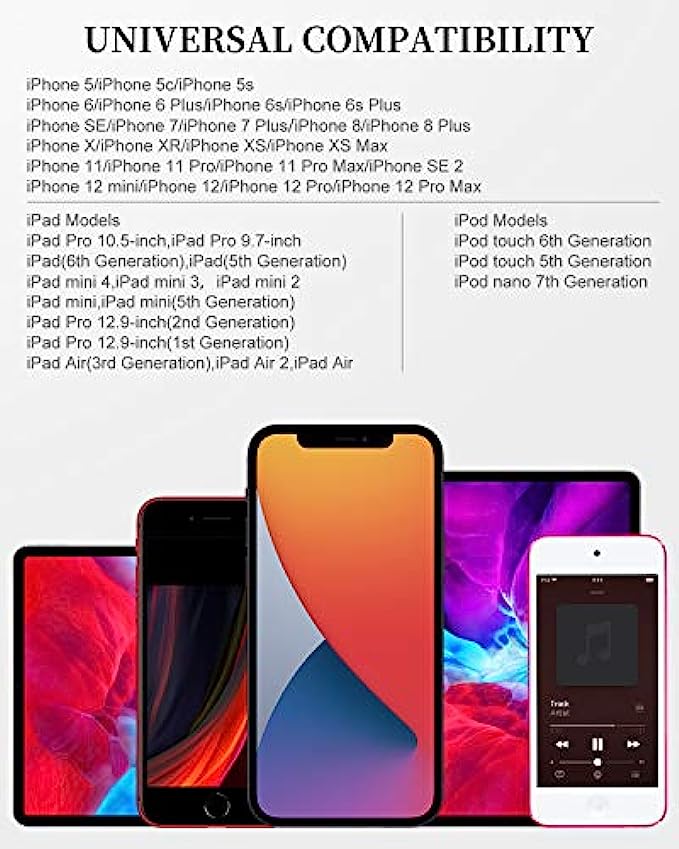 Perfect comptibility - Uzento iPhone lightning cables compatible with iPhone 12/12 mini/12Pro/12Pro Max/11/11Pro/11Pro Max/SE2/XS/XS Max/XR/X/8Plus/8/7Plus/7/6s Plus/6s/6 Plus/6/5s/5c,ipod and iPad
