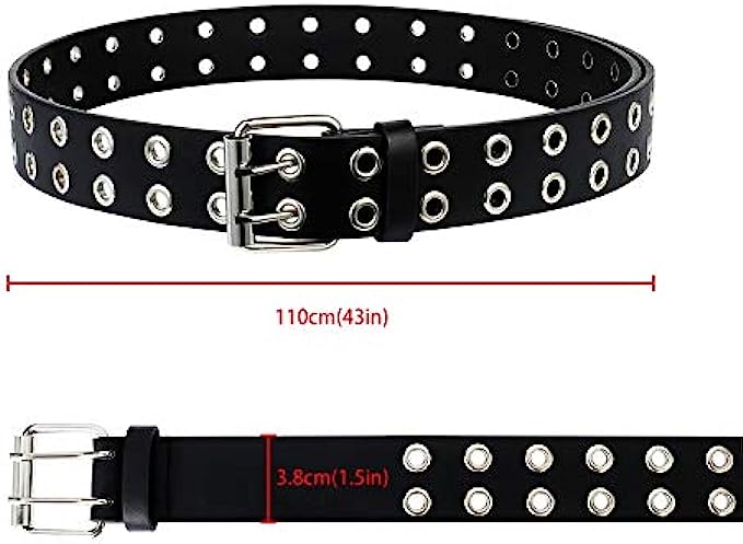 Pu Leather Buckle closure Dry Cloth Clean ❤Easy to match: The grommet belt is perfect for any outfit as jeans, pants, dresses with 2 rows of grommets, rather punk rock & cute look for men or women. ❤Beautiful design: Made from durable PU leather, and featured the most popular two rows of grommets and buckle, this double grommet belt adds a nice edgy touch to your outfits. ❤Easy to fit: Wide strap features 1.5" width all around fit for standard pant belt loop. ❤Warm notice: This Grommet Belt made of PU leather, which may have some smell. Please take it outside for couple days for the smell going away. ❤Wide application: If you are looking for a gift for someone who likes punk rock goth style belt, this rivet belt would be the perfect one. This fashion studded leather belt is also a great accessory for cosplay, bar, masquerade costumes, Halloween costumes or any 80's theme birthday parties. Ideal for men and women.