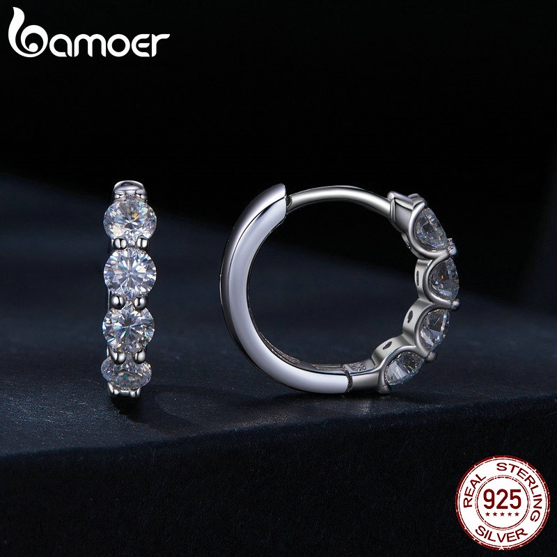 Bamoer 925 Silver D-Color Moissanite 0.1 Karat Classic Six-Claw Diamond Earbuckle for Women