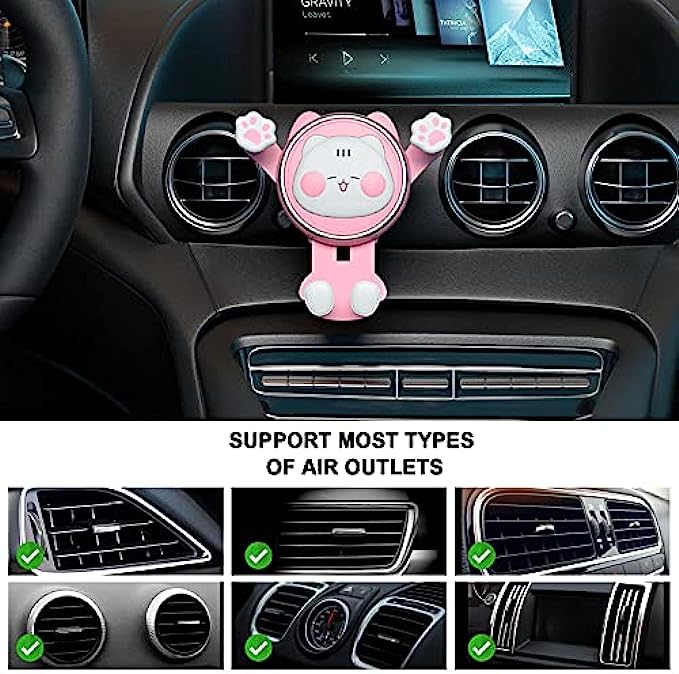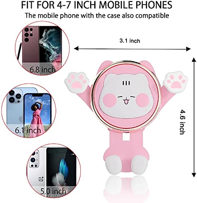 CEENFFO Car Phone Holder Mount, Air Vent Clip Holder Cute, Cell Phone Holder for Car Compatible with 4-7 inch Smartphone Car Accessories for Women and Girls(Pink)