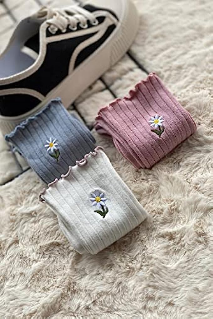 • Daisy socks for charming look(cute socks for women with flower),one size fits most, the casual socks fits Shoe 5-9, stretchy cuff to accommodate any size ankle