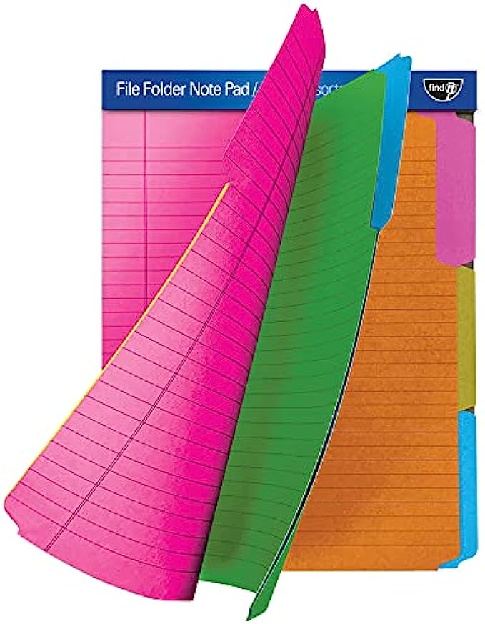 12 FOLDERS - Enjoy 12 assorted third-cut file cabinet folders in each pad. The perforated top allows you to simply tear and file your notes easily and efficiently.