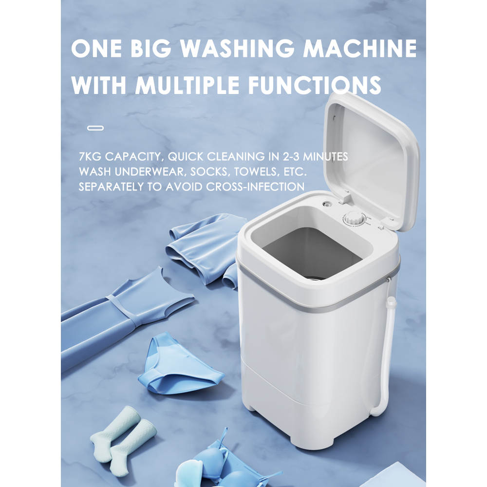 HODEKT Family Mini Washing Machine, Mesin Basuh Large Capacity, Washing Weight, 7KG Blue Light Sterilization Function, 300W Multi-function Control, Semi-automatic Timing Function, No Jitter, No Noise,
