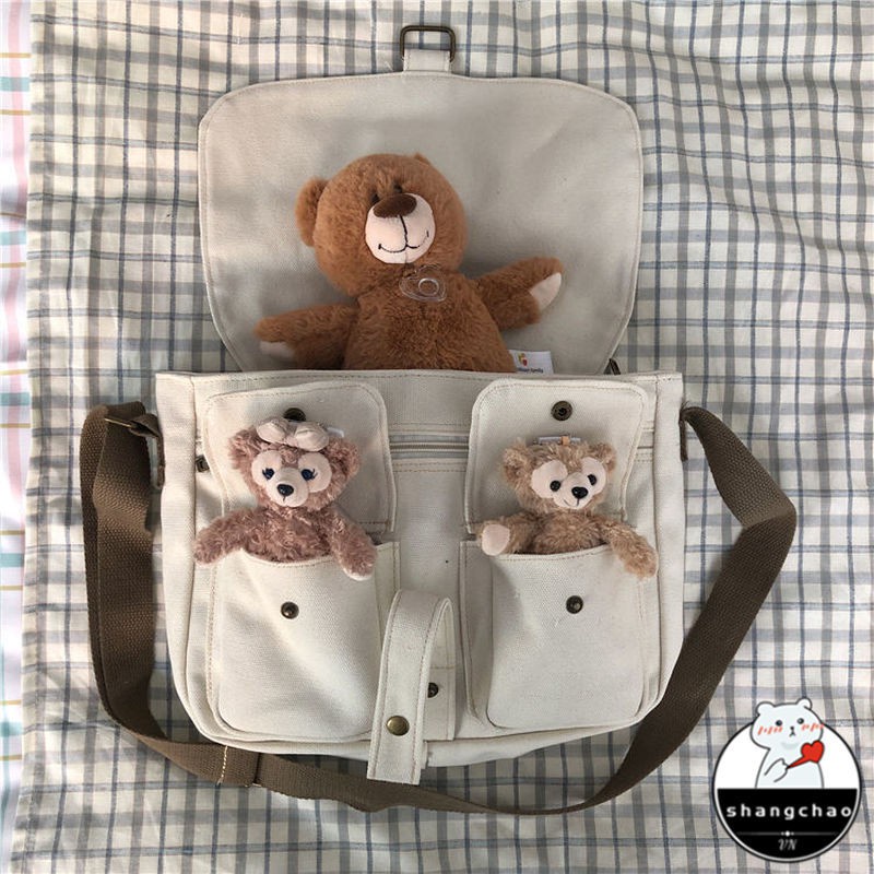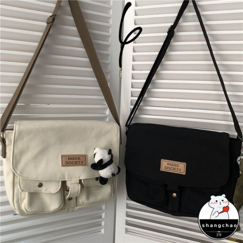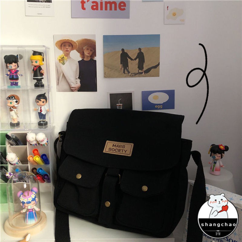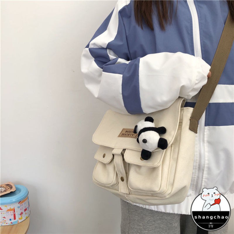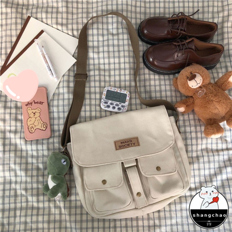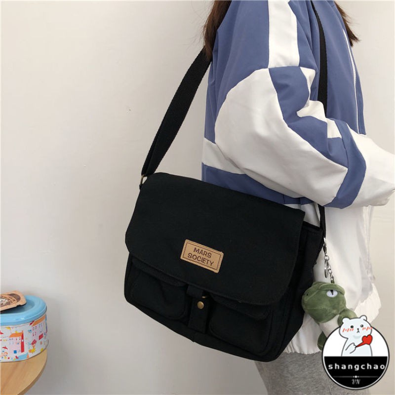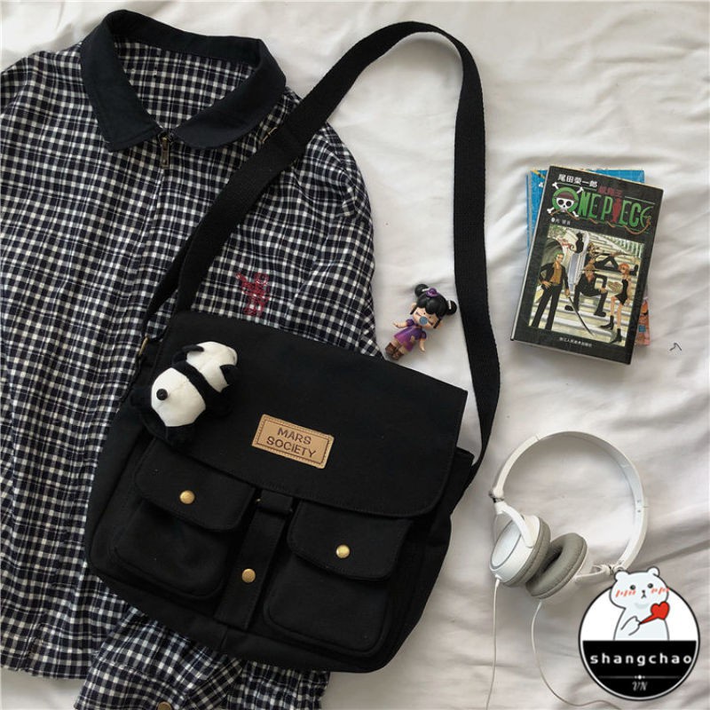 Japanese Harajuku style tooling messenger bag female Korean ins retro student canvas art college style messenger bag