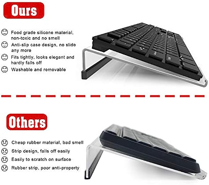 Ergonomic Design - tilted keyboard stand raises flat keyboard at the right angle and height, a slant improves neck shoulder wrist issues and body posture by taking away the stress, makes typing more easier and comfortable.