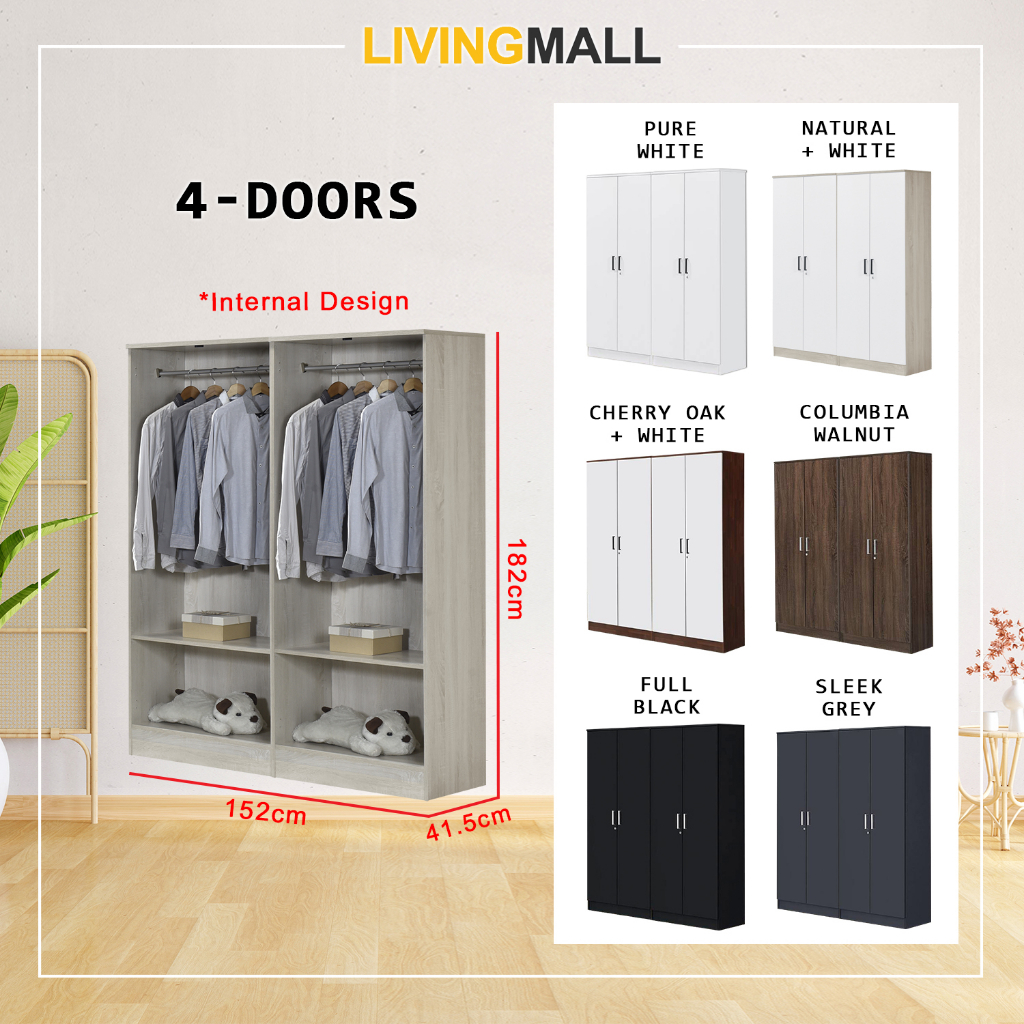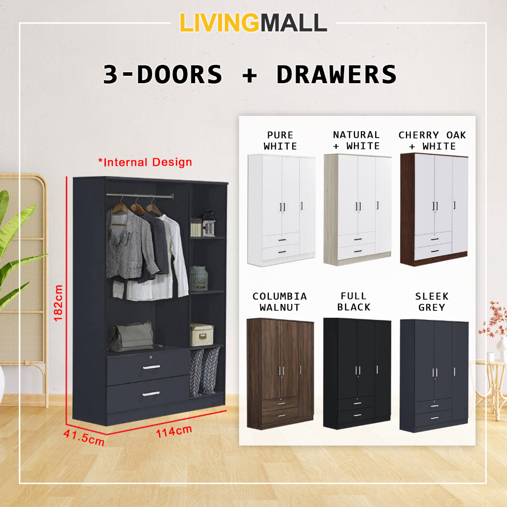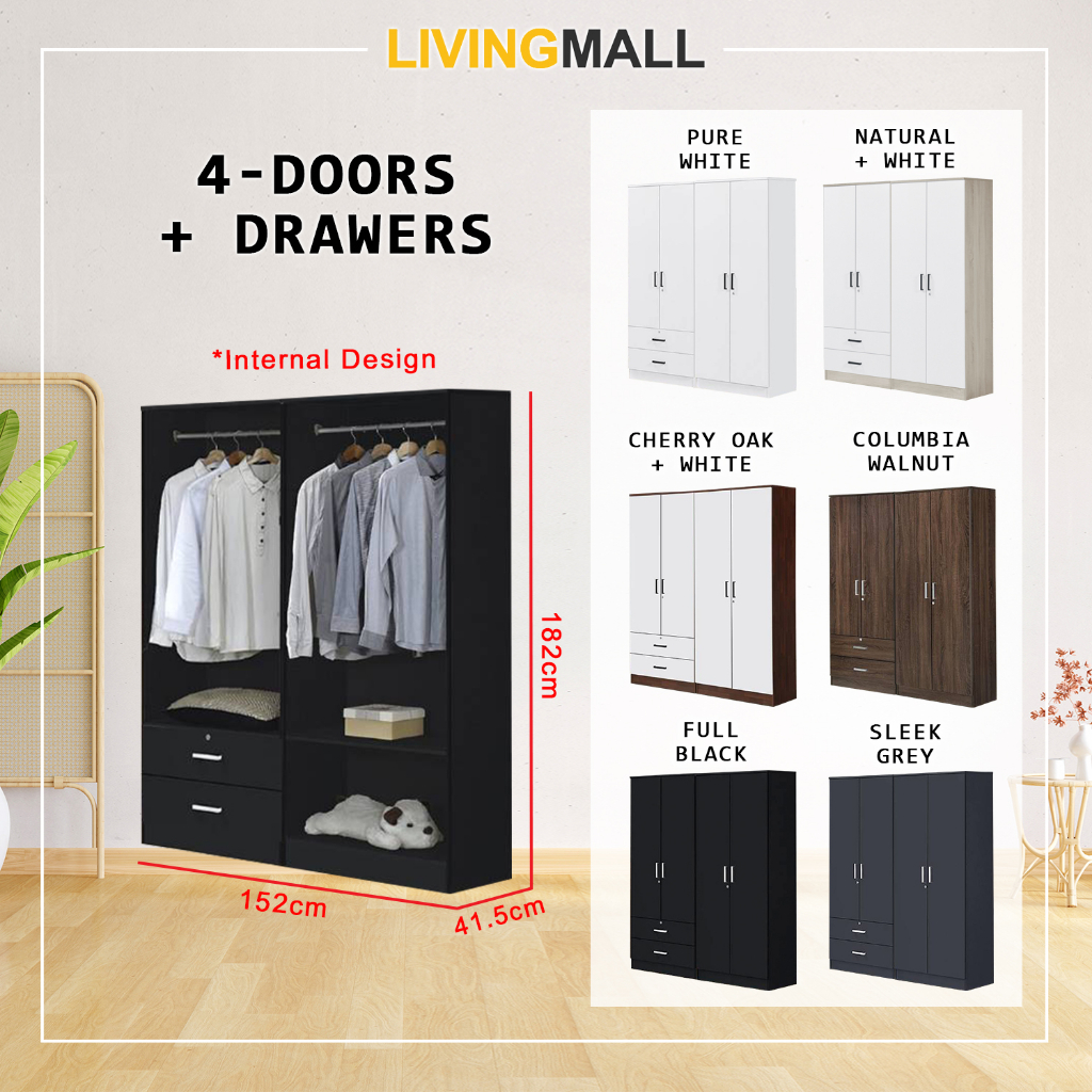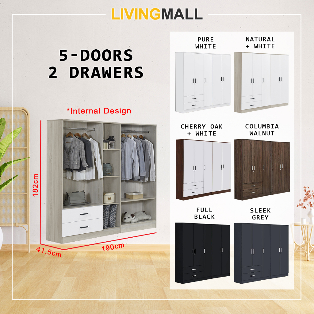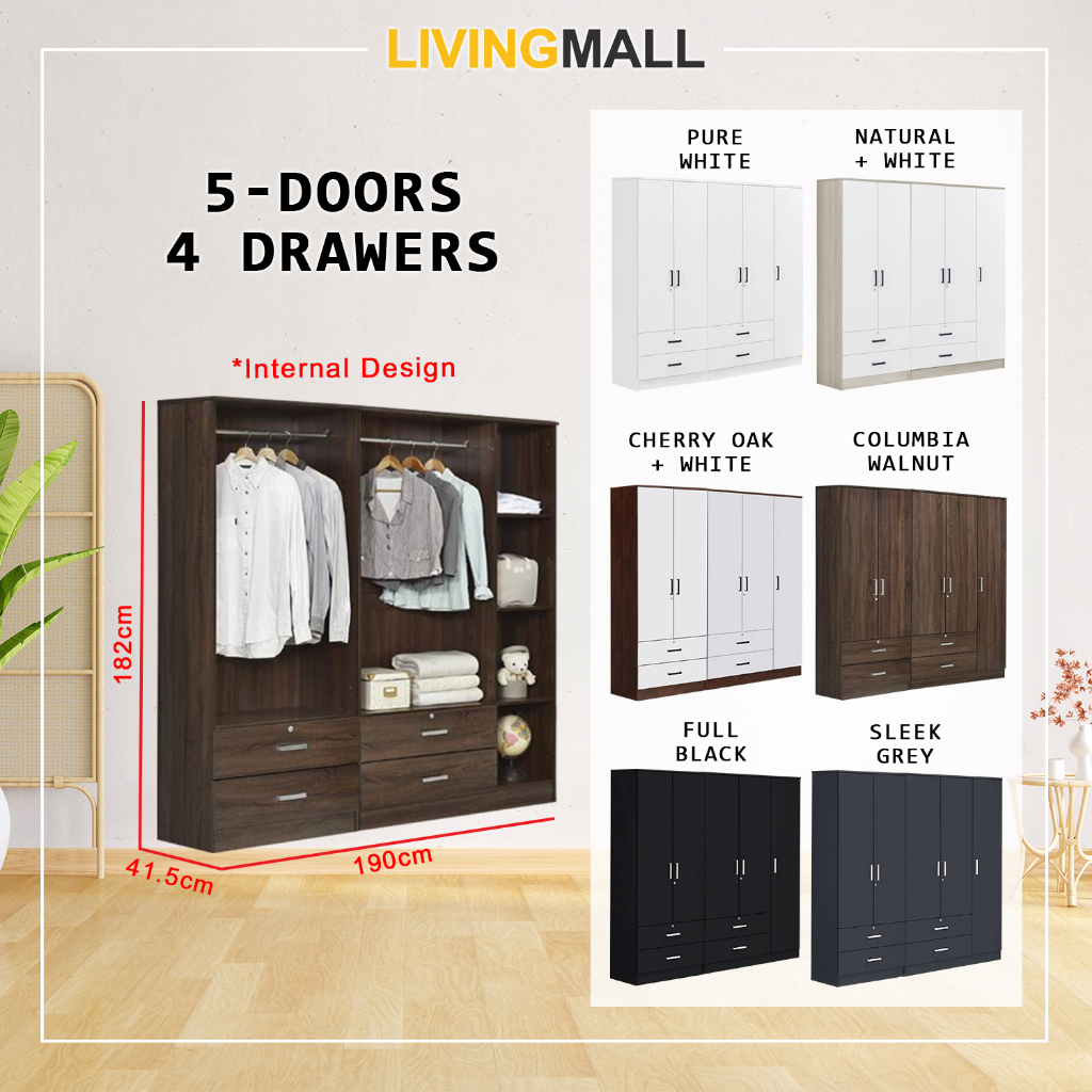Livingmall BERLIN Series 1/2/3/4/5 Doors Soft Closing Wardrobe with Drawers in 6 Colours