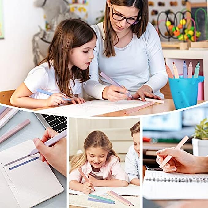 ? Smooth Writing: The square pen body design feels comfortable, mild highlighters is not easy to roll when using, and the smooth ink is not easy to dry up. Also, the ink doesn't bleed through paper, even on the darker colors; You can use it for a long time.