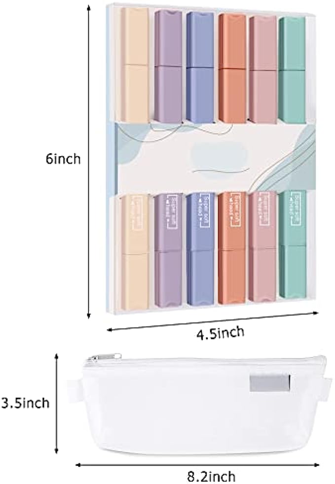 ? Package - You will get 6 pcs cute highlighters with plastic box and 1 clear mesh pen bag. Important, you can use our pencil case to hold the aesthetic highlighters or other school supplies, light weight & space saving, easy to carry.
