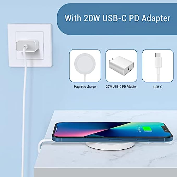 Magnetic Wireless Charger - Magnet Charging Pad Compatible with iPhone 13/13 pro/13 pro max/12/12 mini/12 pro/12 pro max - Mag-Safe Charger for AirPods 3/2/Pro with USB-C 20W PD Adapter