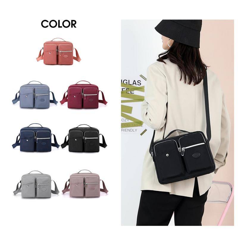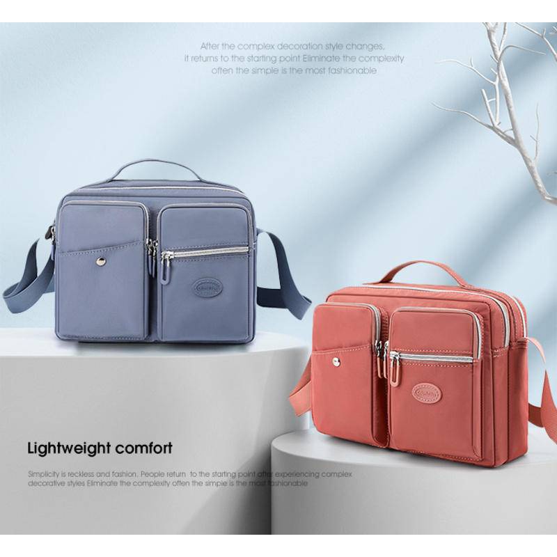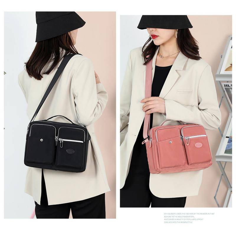 Multifunctional Waterproof Tote Handbag Multi-Layer Storage Design Large Capacity Fashion Shoulder Bag Water-Repellent Nylon Fabric Cross-Body Bag Outdoor Leisure Commuter Busi