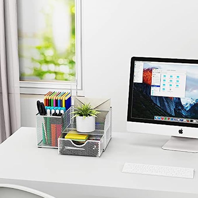 • 【STYLISH MESH DESK ORGANIZER DESIGN】We use superior modern technology to make the construction of office supplies desk organizers much sturdier and more durable. The reliable, high-quality metal mesh design looks more elegant than other mesh or plastic office supplies organizers. There are four non-slip pads on the bottom of the office organizer to protect your desk from scratches