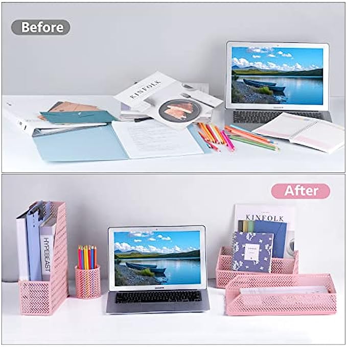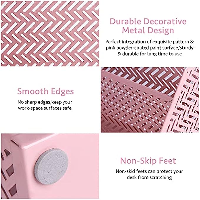 【Sturdy And Durable】:No assembly required! The mesh office organizer set is made of premium metal materials for effectively extending the life time and keeping great performance. Adopting electroplating technology to make the desk organizer to keep excellent glossy and dazzling color,wear-resistant,rust-proof, more solider than wood or plastic ones.