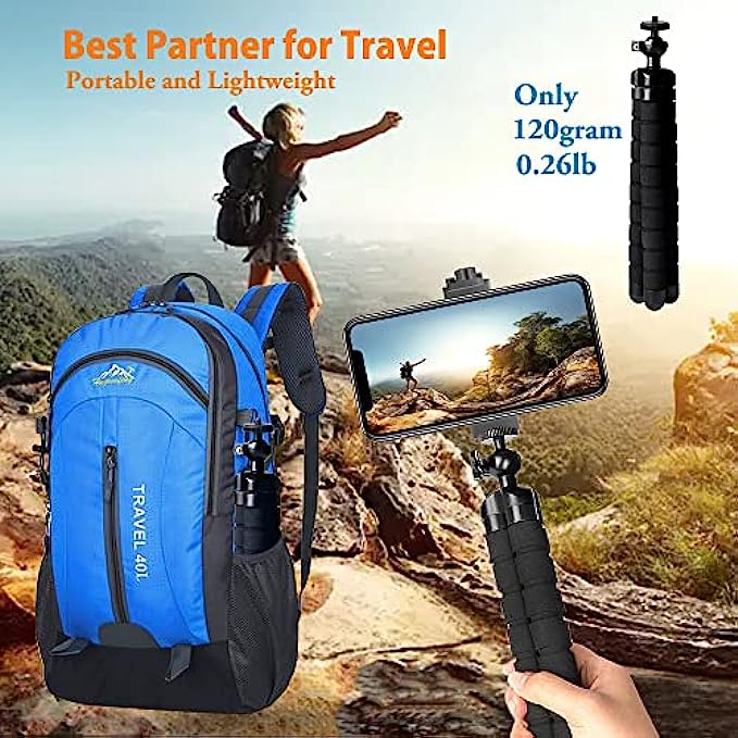 【Lightweight and Travel Tripod】 mini tripod only 120gram(0.26lb) , you can put it in suitcase, backbag, even your pocket for traveling, hiking or camping, or even working as a selfie stick