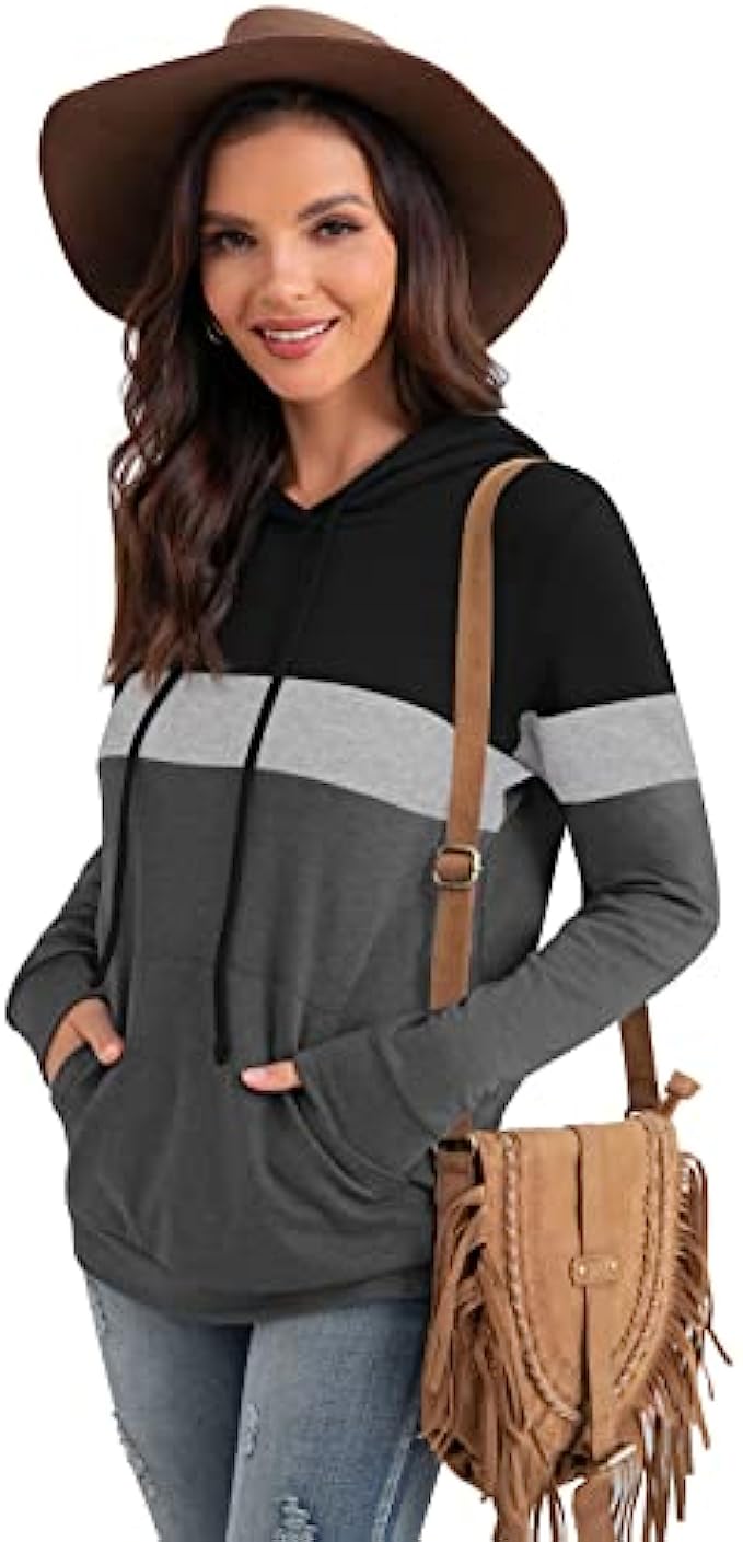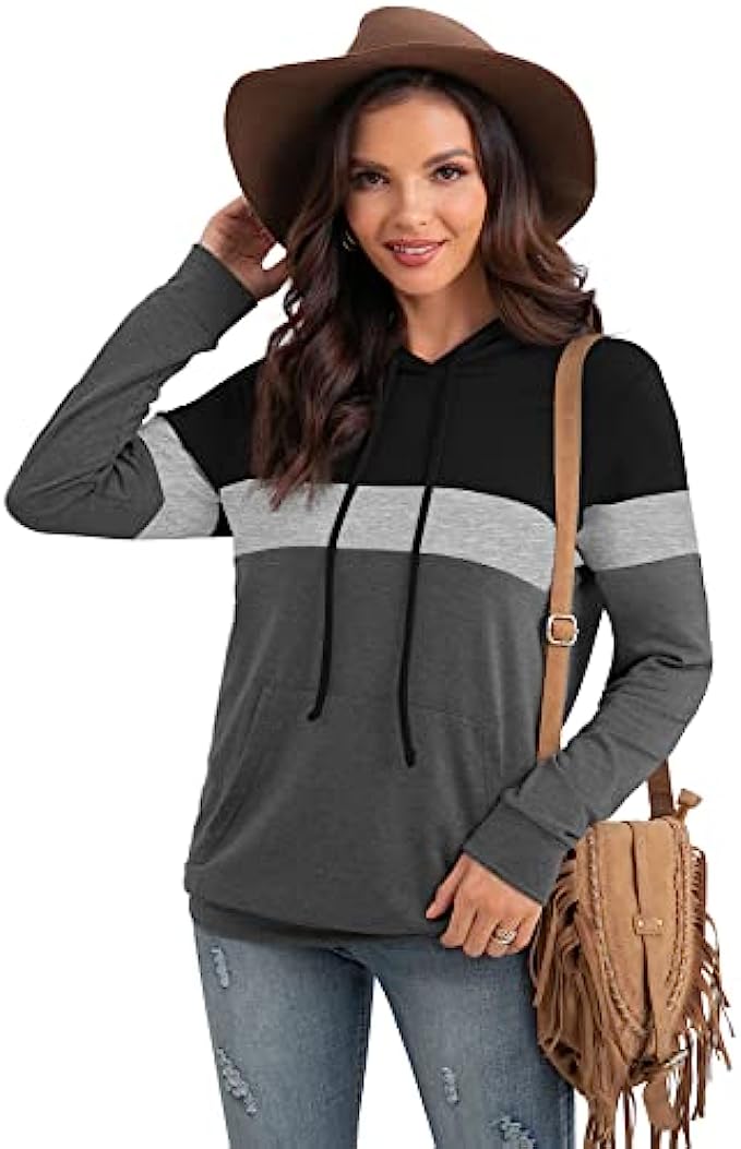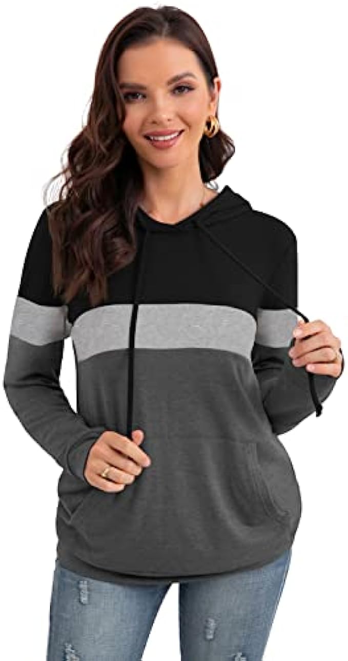 • 【Design】: Women's autumn drawstring pullover has three color blocks, adjustable drawstring, pullover, hoodie. A practical kangaroo pocket, Put your cold hands in when you feel cold, or put some personal belongings when not carrying a bag.