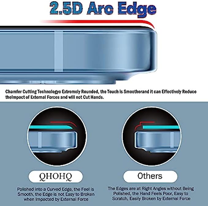 The tempered glass screen protector and camera lens protector are fully compatible only with iPhone 13 Pro Max 6.7". Note: This product was not designed for the iPhone 13 6.1"/iPhone 13 Pro 6.1" and other model. Easy installation, if you don't know how to install, please watch our installation video. High-Definition Function: The surface of the protective film is treated with a coating, which is very smooth, effectively reduce fingerprints from sweat and grease, making the screen very easy to clean. 99.99% optical-grade light transmittance, enhancing the visibility of the screen. Ultra-Thin and Curved Design: Made of 0.33mm tempered glass, maintaining 99.99% response sensitivity and touch, ensures quick app launch, smooth games and video playing, bringing you a perfect touch experience. 2.5D rounded corner design, the edge feels smooth and never scratches. AR Technology and Night Shooting Function: The camera lens protector are designed for iPhone 13 Pro Max 6.7", using augmented reality "Seamless" fusion new technology, with enhanced light transmission function, no need to design the flash hole position, even if the flash is turned on at night, it can be 99.99% guarantee the original quality of photos and videos. Specialty: Full screen coverage protection (except edges). The protective film surrounds the entire iPhone 13 Pro Max 6.7" display, but in order to enhance compatibility with most case, the tempered glass designed to cover the edge of the phone as much as possible, will not cover the entire phone screen.