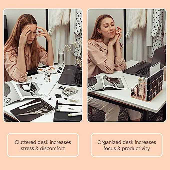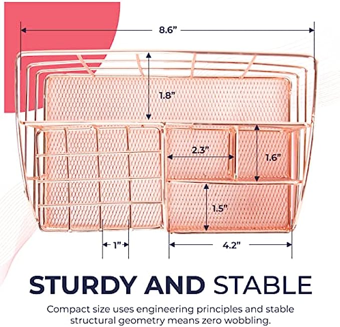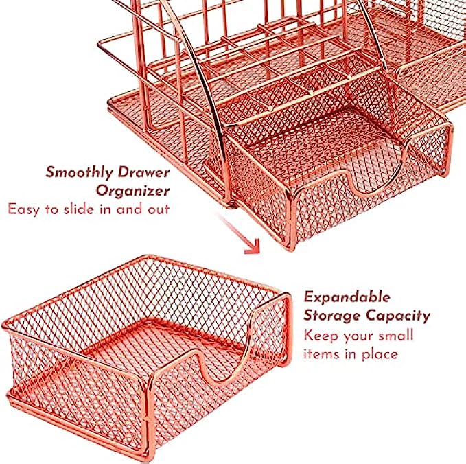 ⭐ STYLISH ROSE GOLD DESIGN: A stunning combination of wire mesh and chic rose gold coating adds eye-catching vibrancy to any room. Modern style meets classic function in this cute desk organizer. Desktop organization just got an elegant new makeover