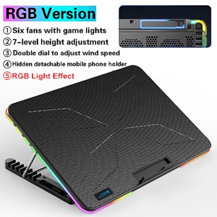 SG Local 6 Fans RGB Laptop Cooling Pad Gaming Laptop Cool Pad with 7 Level Adjustable Height Stand for 12-17 Inch Laptop