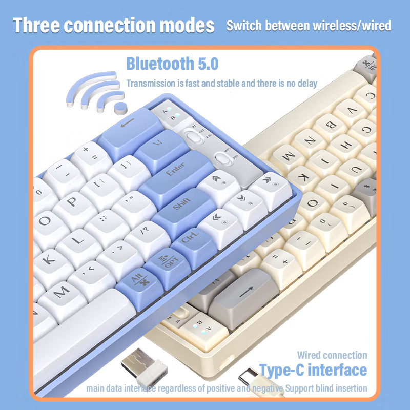 [SG Stock] Wireless Keyboard Hotswappable Mechanical Keyboard With 3Model Bluetooth+USB+2.4G 65 Keys Portable Rechargeable Colorful Lights Keyboard
