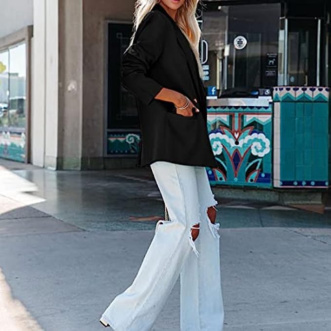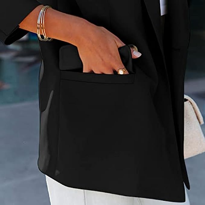 58% Polyester, 36% Viscose, 6% Spandex Polyester lining Button closure Machine Wash ❤ Material: Polyester&Spandex. Soft fabric. This jacket comes with a full lining. Soft and Comfortable to Wear.Notice: Model wear a bigger size.you can choose a bigger size to be an over-size looking.Or choose a normal size to be fitting. ❤ Features: Double breasted peak lapel blazer jacket for women. Made well with seams, hems and fully lined, two functional flap pockets, Front button, cuff buttons, solid color, casual fit. ❤ Match:Casual wear or office, work, meeting, night out, going out, etc. This blazer paired jeans will give you a fashions modern layered look