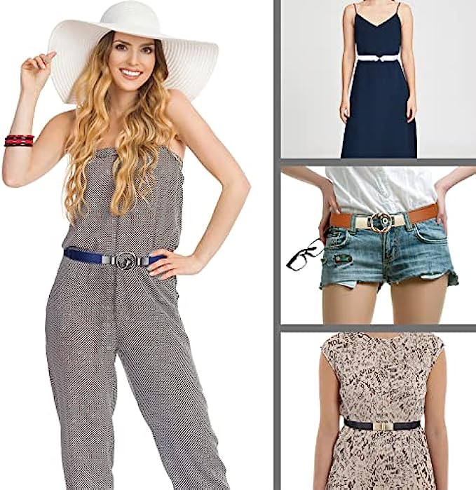 • 【Elastic Type Belt】Stretchy leather belts were made of PU leather, fabric and metal. The elastic band with flexible elasticity make the skinny waist belt suitable for most girls and women with waist size from 26” to 33”