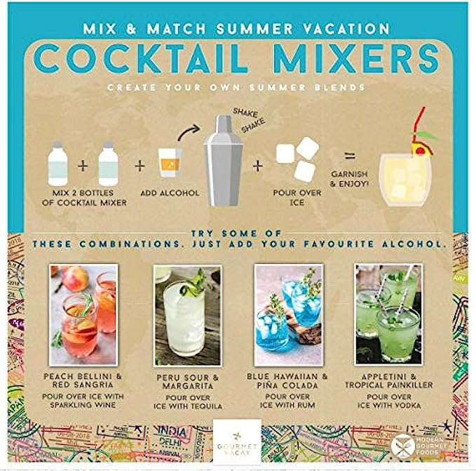 • MIX two bottles together and add alcohol to create a new cocktail flavor. Simple recipe for easy use