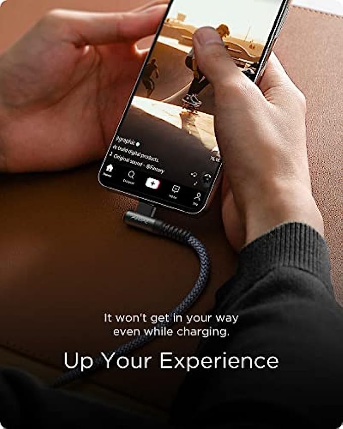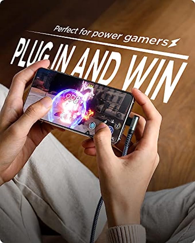 [Upgraded Exclusive Right Angle Design] This right angle type c charging cable fast charge with an innovative 90 degrees " L " design. It's user-friendly design more convenient and comfortable for playing games, watching videos, reading e-books when you charging. 【 NOTE: The thickness of the compatible mobile phone case charging port is 5.5mm.】