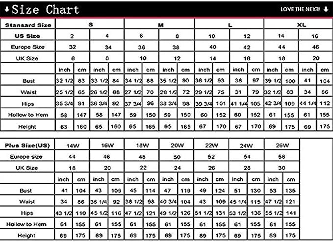 1.Farbic:Chiffon,Lace 2.Notice:Please Select the Size According to Our Size Chart Image on the Top Left(Do not refer to “Sizing Chart”) . Please Choose right style, size and color,take accurate measurements 3.Customized sizes and colors and styles are also available. Please send us your detail size: Bust, Waist, Hips and Hollow to Floor.(See Product Description list) , we are always at your service. 4.please give me your size as bust,waist,hips,heigh after you place the order 5.The shooting light and setting of your computer screen may cause slight color mismatches. All products are subject to material objects.