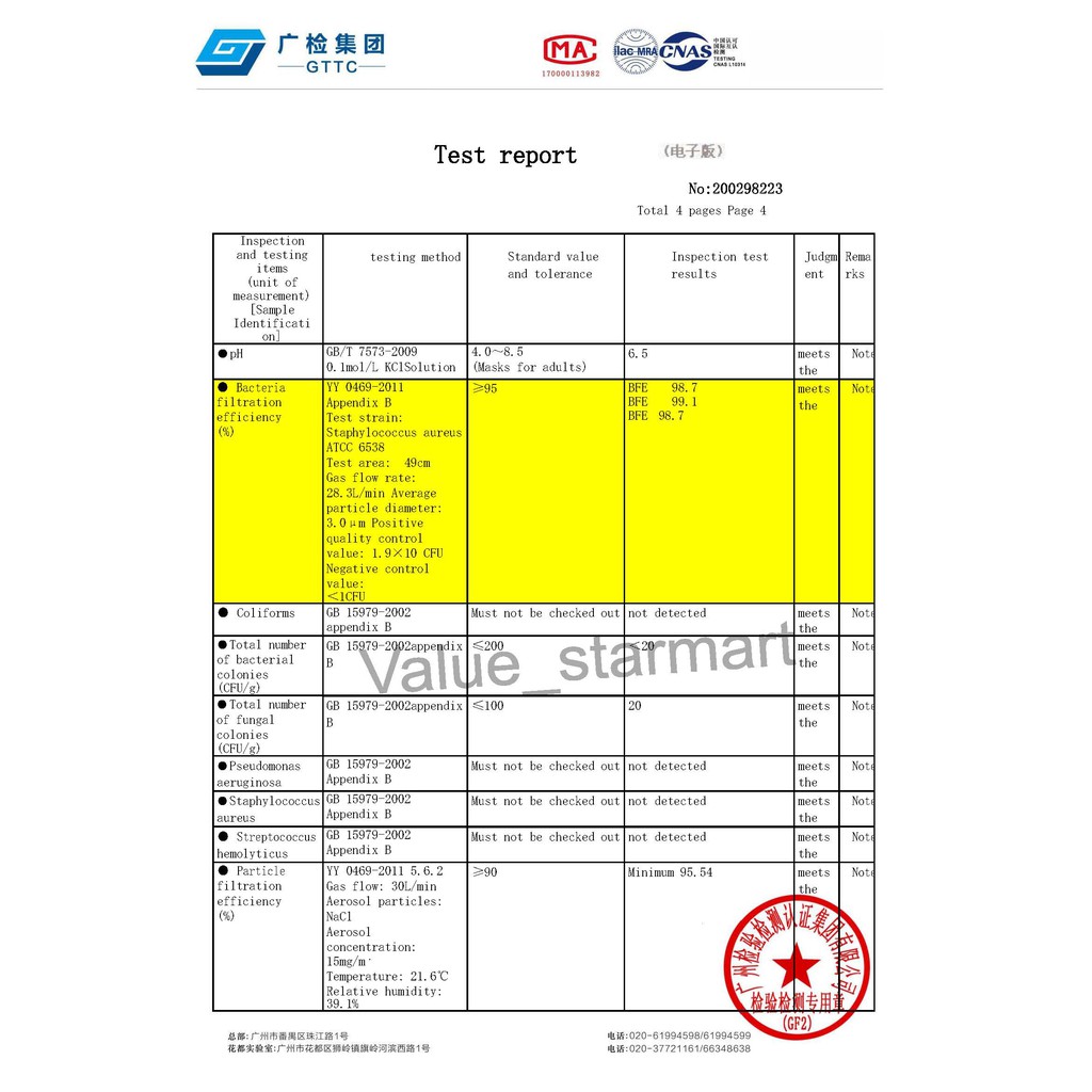 Performance:not sure Suitability:yes Although it say’s Singapore brand but it’s made in china. It says test results for BFE is 99/98%, the box says BFE >95% PFE > 90%.