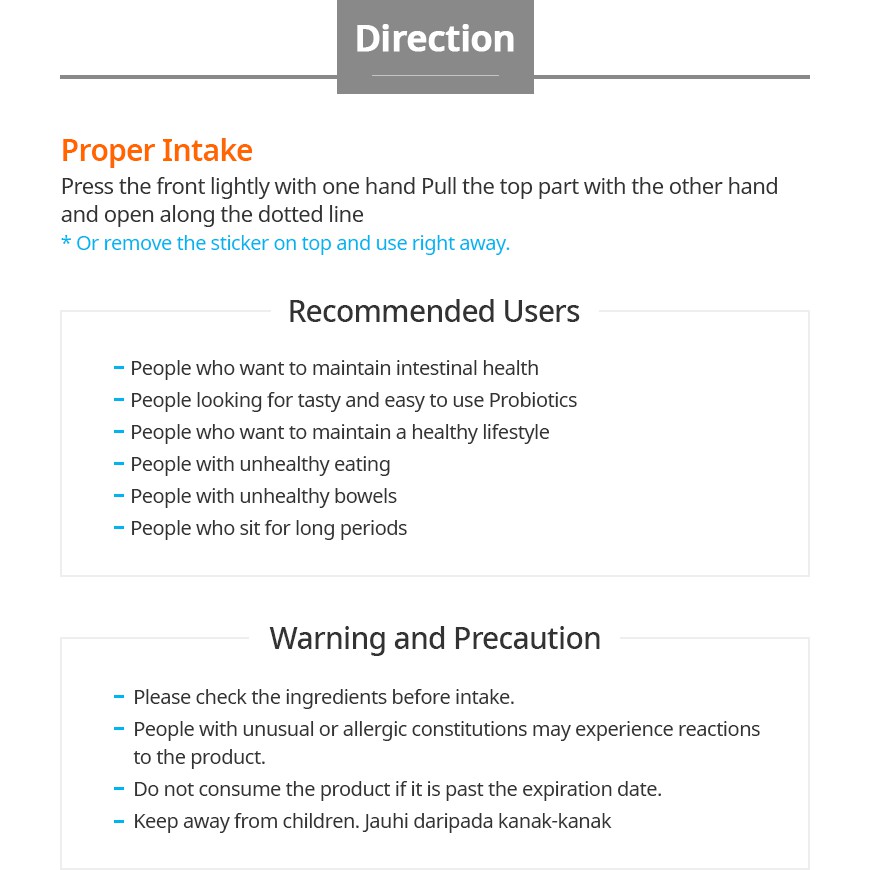 Suitability:okay Performance:good Fast delivery. Been consuming atomy probiotics for quite sometime and it does help to smoothen bowel movements. Overall satisfied with this product and seller response is good too.