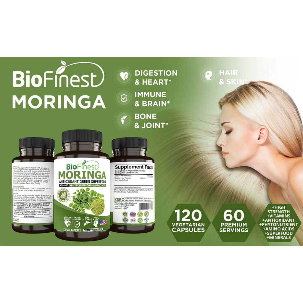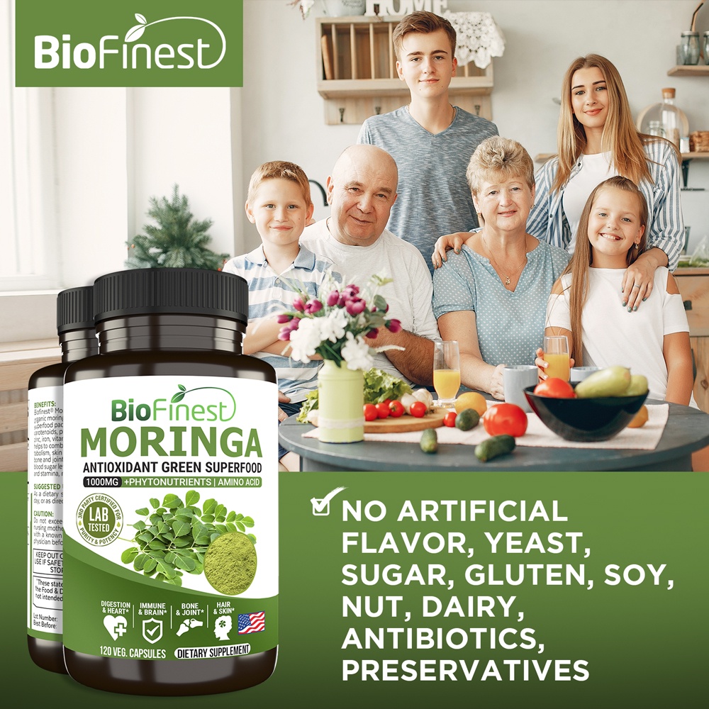 Performance:good performances . Suitability:suitable for adults , male and female, young and old . BioFinest Moringa leaf 1000mg + phytonutrients / amino acid . 120 vegan capsules dietary supplement. Easy to use flip-open-close bottle cap for daily use, convenience to carry around for home, office, workout and traveling. Smooth and easy to swallow form, no oversized capsules, no nauseating bitter attertaste. Tasteless, no bitter aftertaste, smooth to swallow. After taking moringa leaf capsules supplement my muscles clamped was gone. I will definitely recommend to my friends and colleagues. Very fast delivery. Thanks seller and team for their hard efforts to deliver this product in time. This is my second time ordering.