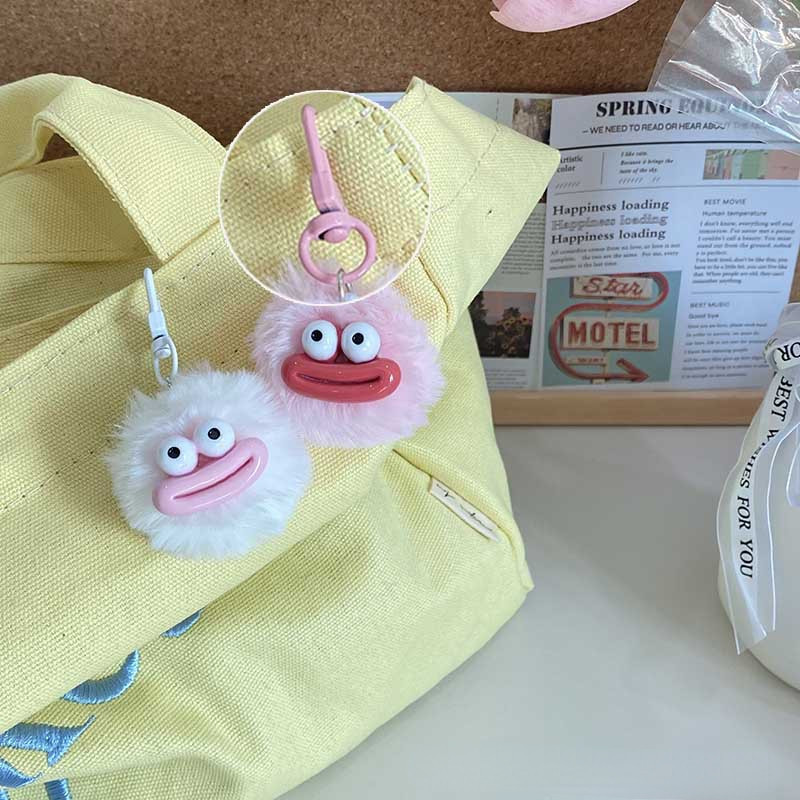 Cute Sausage Mouth Fur Ball Keychain Funny Fun Pendant School Bag Ornaments