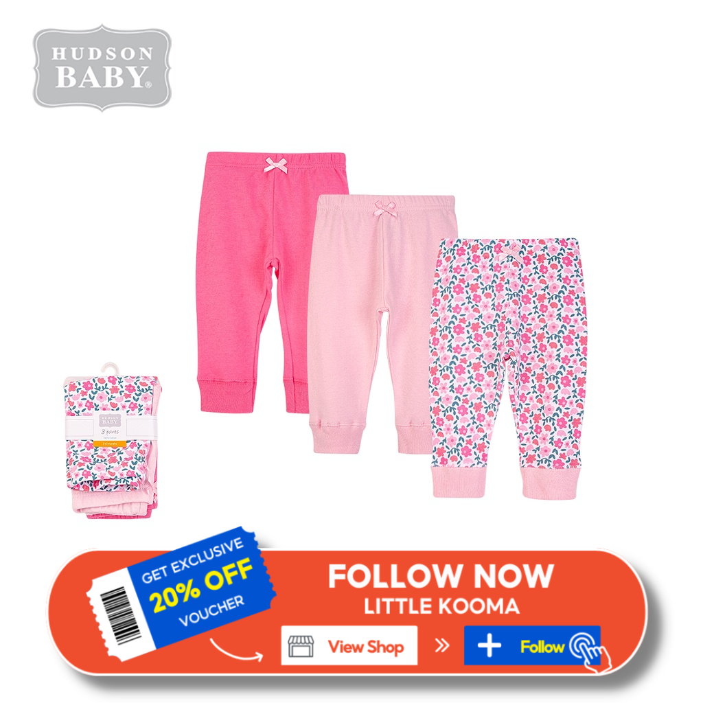 Hudson Baby Luvable Friends Baby Pants Multi-Pairs Pack Pure Cotton Elastic Waist for Easy Dressing Baby Bottoms
