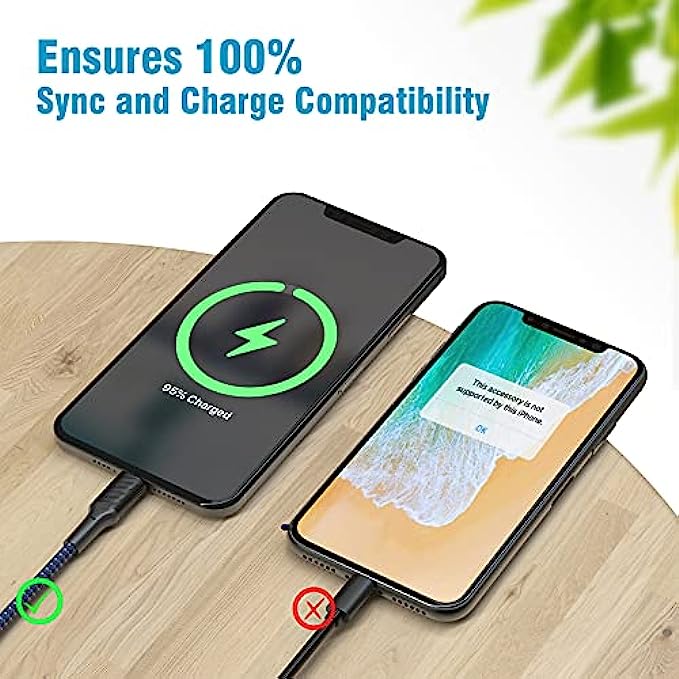 • Nylon Braided iPhone Charger Cable :IPhone charging cable with reinforced joint design that have passed 15,000+ times bending tests for extra protection and durability.braided nylon insulation and precisely layer-welded connectors,which make cable more durable and sturdier than normal iPhone charger cables but also flexible and tangle-free. Withstand a variety of everyday connection needs and long-term use