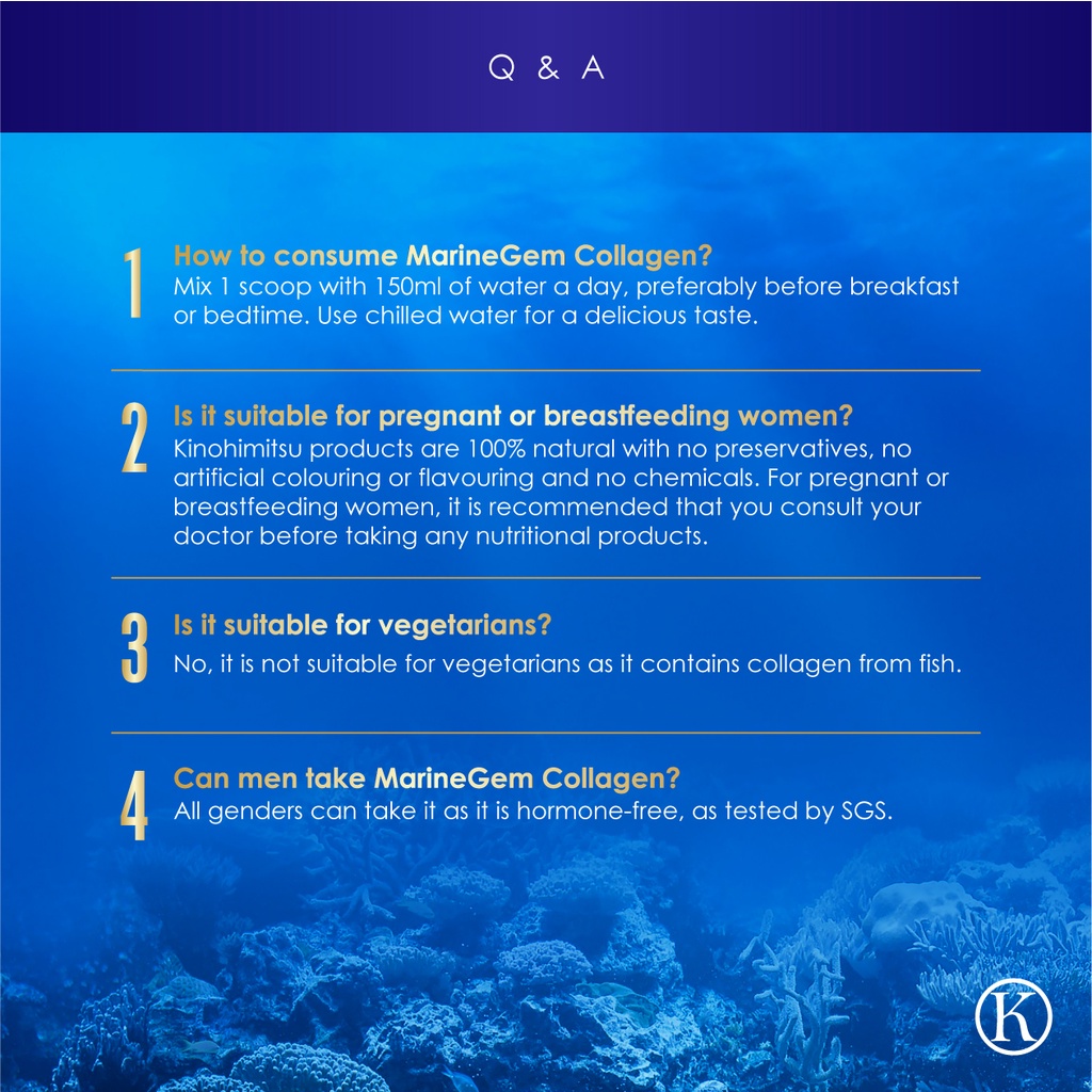 Performance:To prevent wrinkles by boosting up the collagen Suitability:Above 25 years old Prompt delivery, items received in good condition. I've been drinking collagen diamond for 2 years. This time bought marine gem collagen to try out and compare the difference. There is free scoop given inside the packet and the marine gem collagen has a nice lychee taste which is not too sweet.