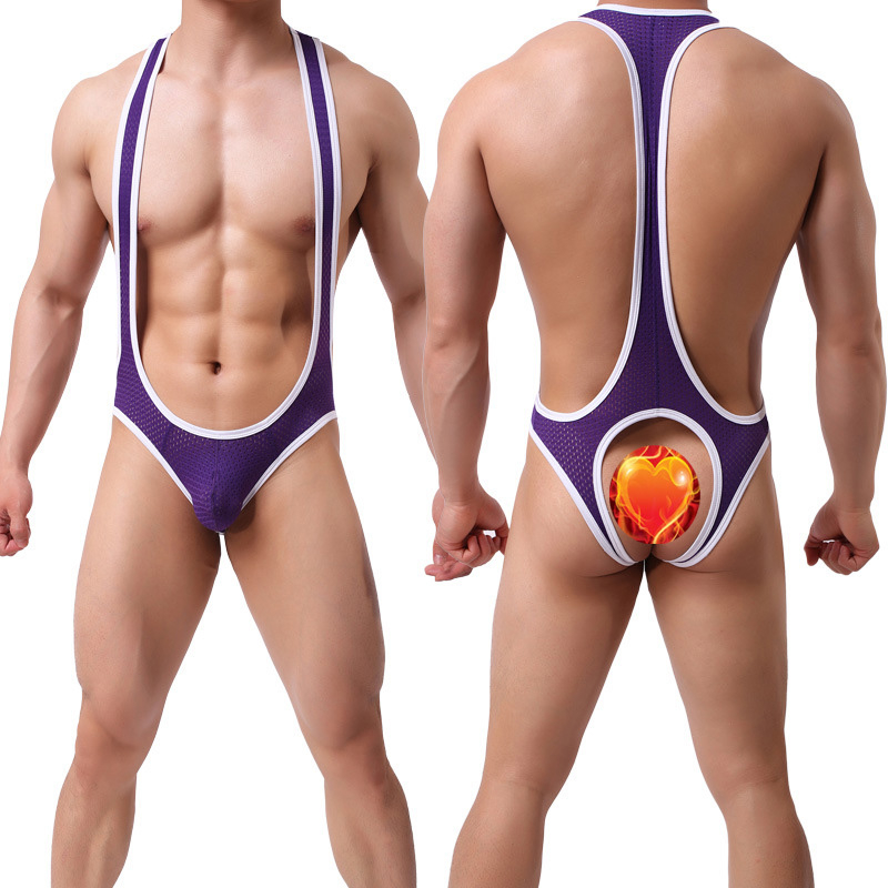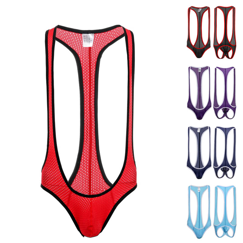 Men Jockstrap Leotard Elastic Mesh Underwear Jumpsuits Wrestling Singlet Bodysuit