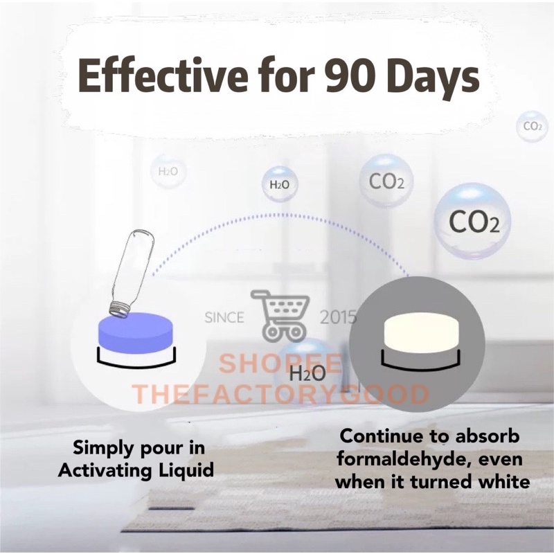 Performance:good Quality:good Suitability:good Very fast delivery, easy to use and turns white quickly, hope that it’s able to absorb formaldehyde quickly in my new house and get rid of unwanted odour from the carpentry. Good that it can last for 90 days so don’t need to keep changing and getting new ones. This is the 2nd time purchase as need more tubs in the house. Will purchase more if needed!